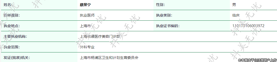 主要執(zhí)業(yè)機(jī)構(gòu):上海名媛醫(yī)療美容門(mén)診部
