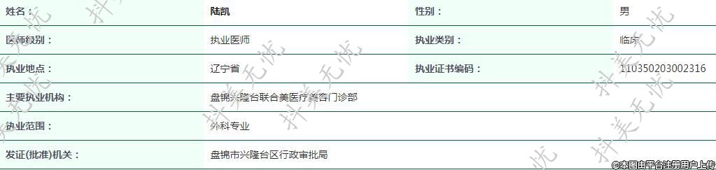 主要執(zhí)業(yè)機構:盤錦興隆臺聯(lián)合美醫(yī)療美容門診部