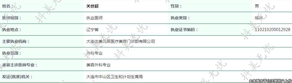 主要執(zhí)業(yè)機(jī)構(gòu):大連達(dá)美元辰醫(yī)療美容門診部有限公司