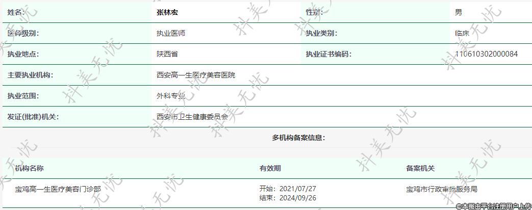 主要執(zhí)業(yè)機(jī)構(gòu):西安高一生醫(yī)療美容醫(yī)院
