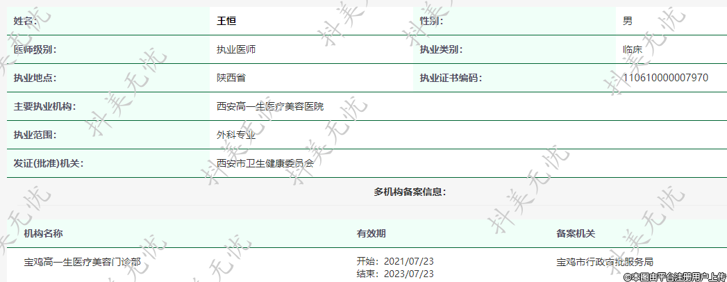 主要執(zhí)業(yè)機構(gòu):西安高一生醫(yī)療美容醫(yī)院