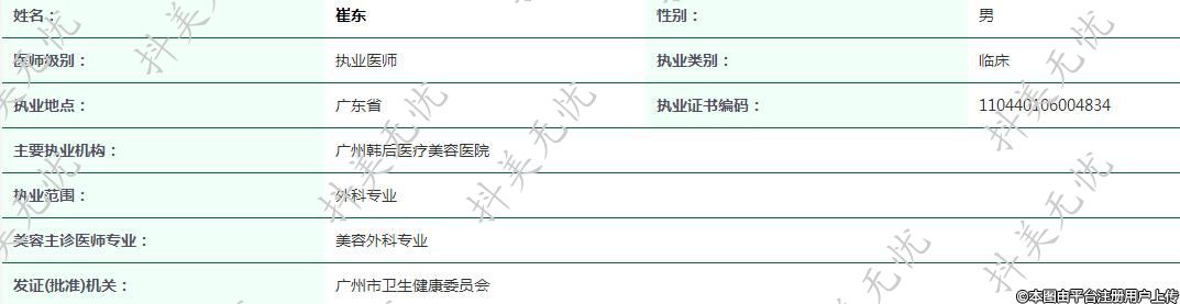 主要執(zhí)業(yè)機構(gòu):廣州韓后醫(yī)療美容醫(yī)院
