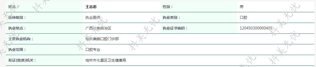 主要執(zhí)業(yè)機(jī)構(gòu):桂林美皓口腔門診部