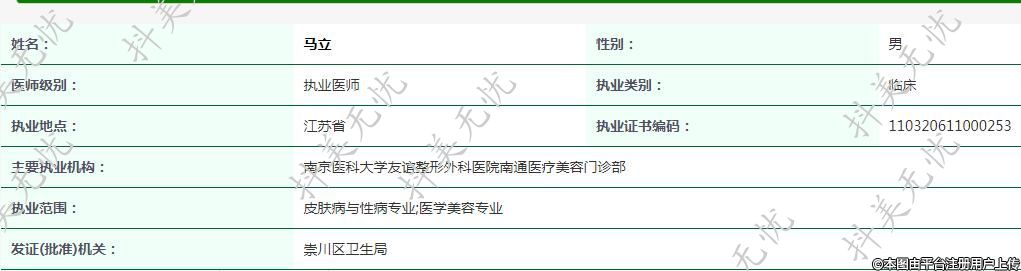 執(zhí)業(yè)范圍:皮膚病與性病專業(yè);醫(yī)學(xué)美容專業(yè)