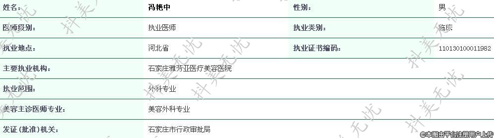 主要執(zhí)業(yè)機構(gòu):石家莊雅芳亞醫(yī)療美容醫(yī)院