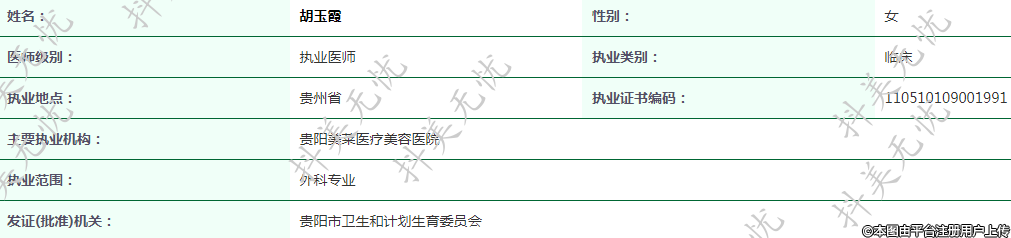 主要執(zhí)業(yè)機構(gòu):貴陽美萊醫(yī)療美容醫(yī)院