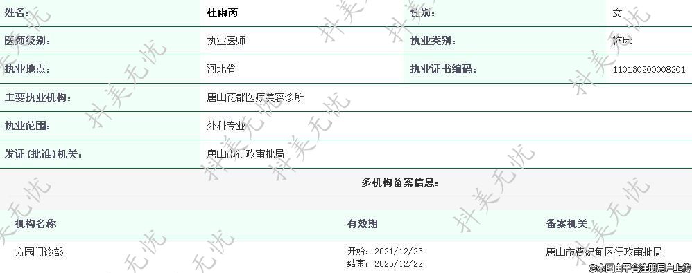 主要執(zhí)業(yè)機構:唐山花都醫(yī)療美容診所