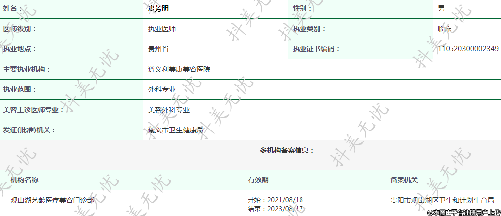 主要執(zhí)業(yè)機(jī)構(gòu):遵義利美康美容醫(yī)院