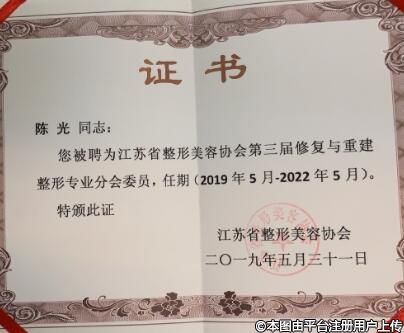 江蘇省整形美容協(xié)會第三屆修復與重建整形專業(yè)分會委員,任期(2019年5月-2022年5月)