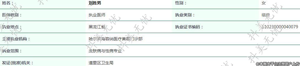 發(fā)證(批準)機關:道里區(qū)衛(wèi)生局