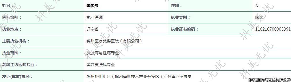 主要執(zhí)業(yè)機(jī)構(gòu):錦州醫(yī)療美容醫(yī)院(有限公司)
