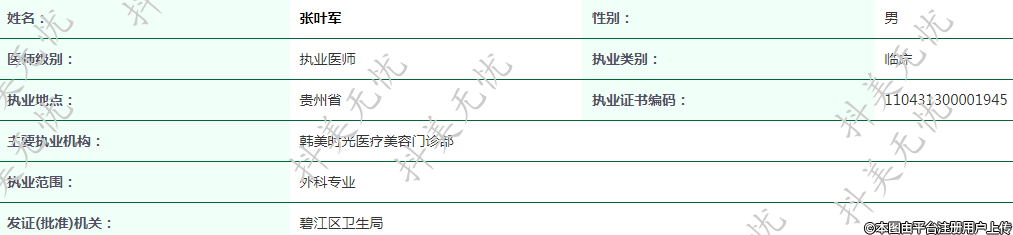 現(xiàn)任銅仁韓美時(shí)光醫(yī)療美容執(zhí)業(yè)醫(yī)師