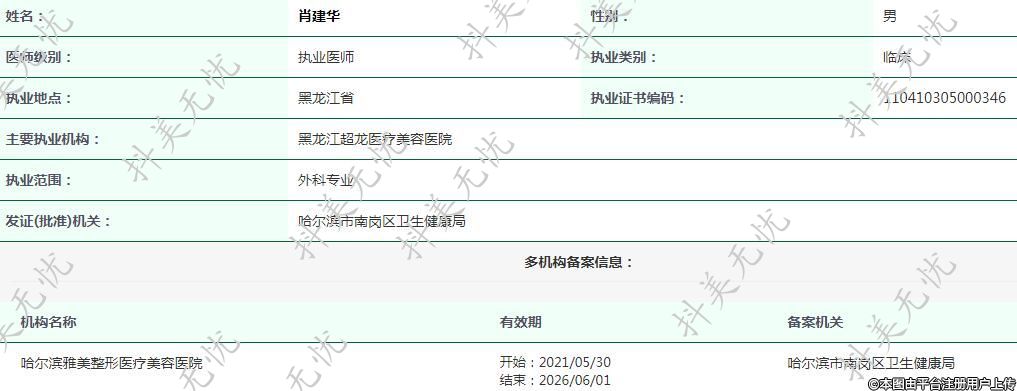 黑龍江超龍醫(yī)療美容執(zhí)業(yè)醫(yī)師