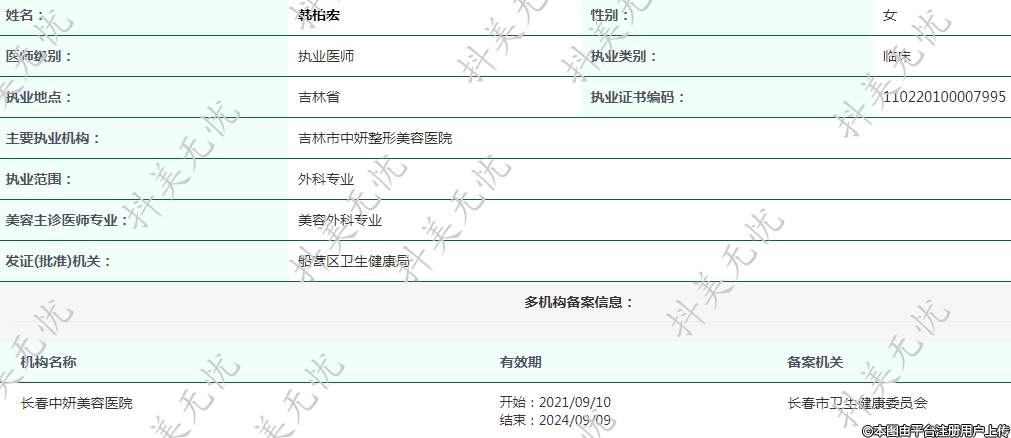 主要執(zhí)業(yè)機(jī)構(gòu):吉林市中妍整形美容醫(yī)院