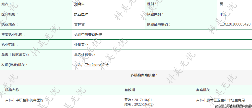 主要執(zhí)業(yè)機(jī)構(gòu):長春中妍美容醫(yī)院