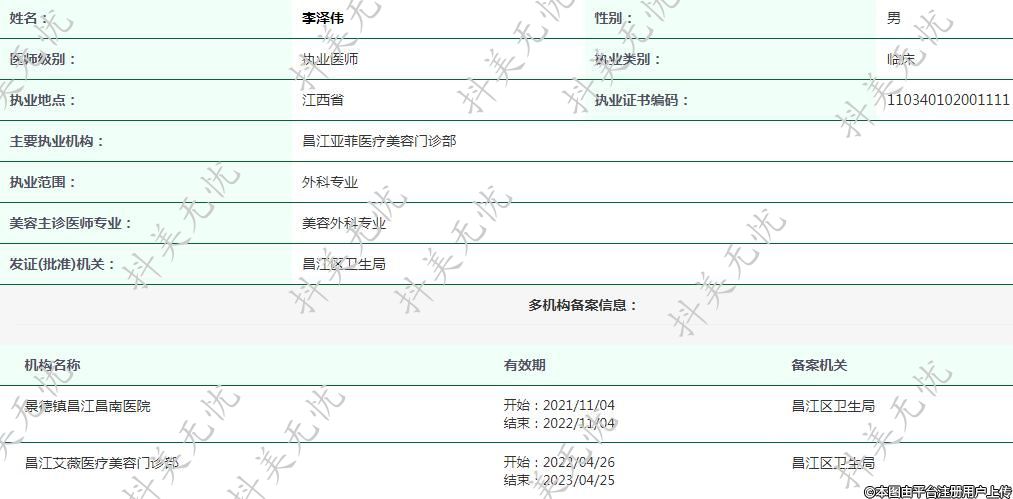 發(fā)證(批準)機關:昌江區(qū)衛(wèi)生局