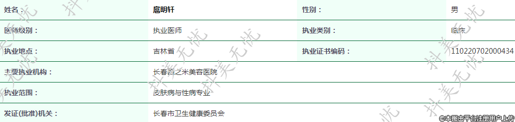 現(xiàn)任長(zhǎng)春西之米執(zhí)業(yè)醫(yī)師