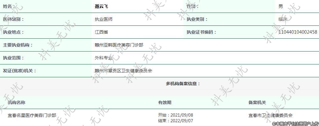 主要執(zhí)業(yè)機(jī)構(gòu):贛州亞韓醫(yī)療美容門(mén)診部