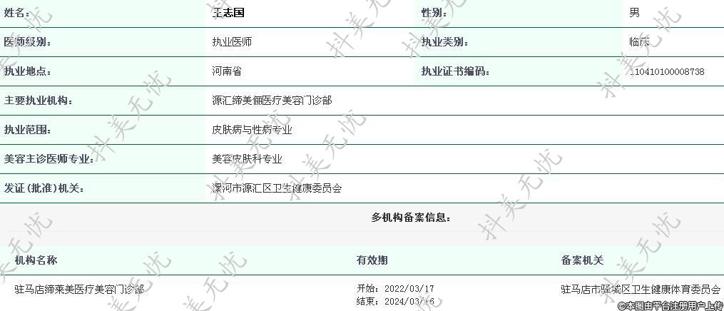 駐馬店締萊美執(zhí)業(yè)醫(yī)師 -