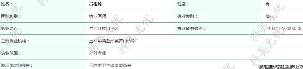 主要執(zhí)業(yè)機(jī)構(gòu):玉林華美整形美容門診部