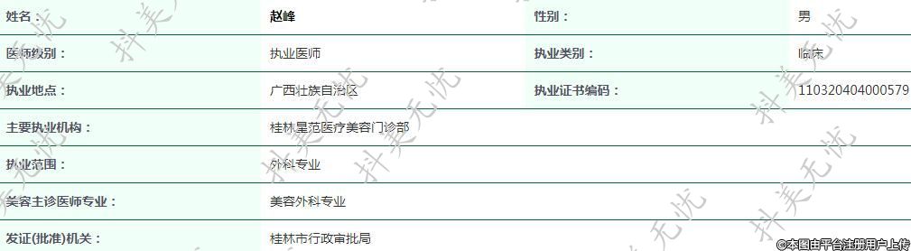 主要執(zhí)業(yè)機(jī)構(gòu):桂林星范醫(yī)療美容門診部