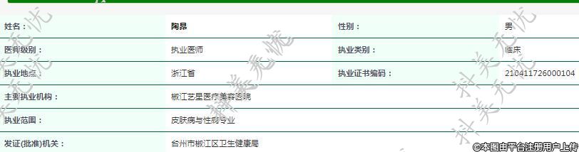 主要執(zhí)業(yè)機(jī)構(gòu):椒江藝星醫(yī)療美容醫(yī)院