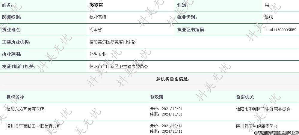 主要執(zhí)業(yè)機(jī)構(gòu):信陽美爾醫(yī)療美容門診部