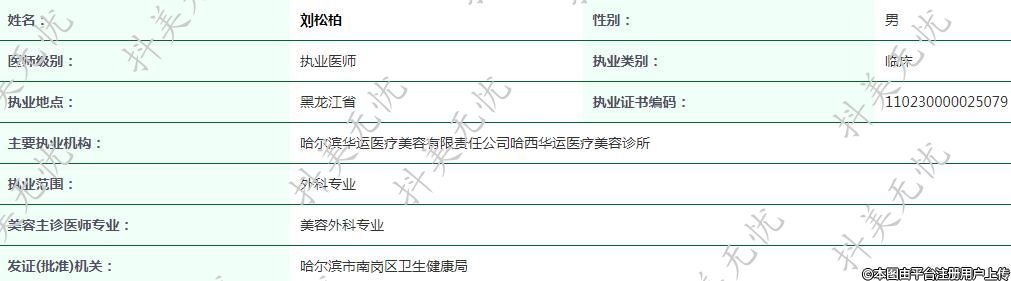 主要執(zhí)業(yè)機(jī)構(gòu):哈爾濱華運(yùn)醫(yī)療美容有限責(zé)任公司哈西華運(yùn)醫(yī)療美容診所