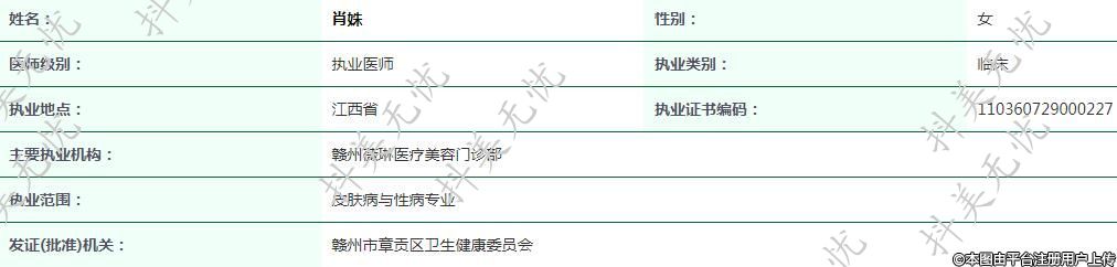 主要執(zhí)業(yè)機構(gòu):贛州薇琳醫(yī)療美容門診部