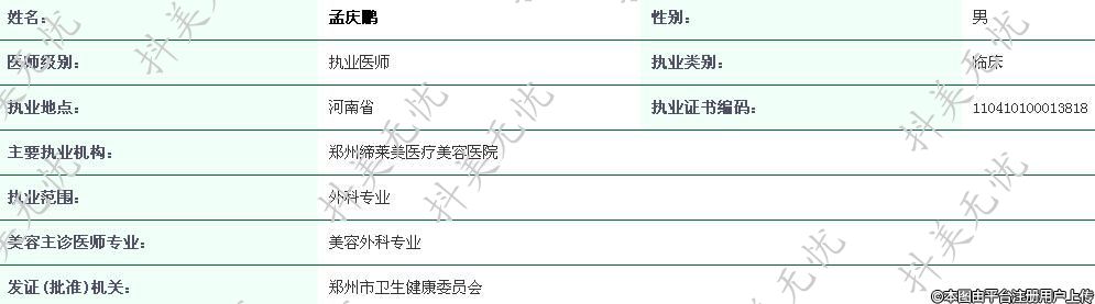 主要執(zhí)業(yè)機(jī)構(gòu):鄭州締萊美醫(yī)療美容醫(yī)院