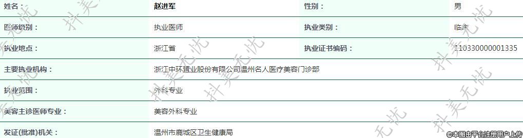 溫州名人醫(yī)療美容執(zhí)業(yè)醫(yī)師