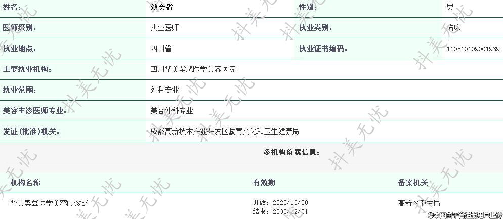 主要執(zhí)業(yè)機(jī)構(gòu):四川華美紫馨醫(yī)學(xué)美容醫(yī)院