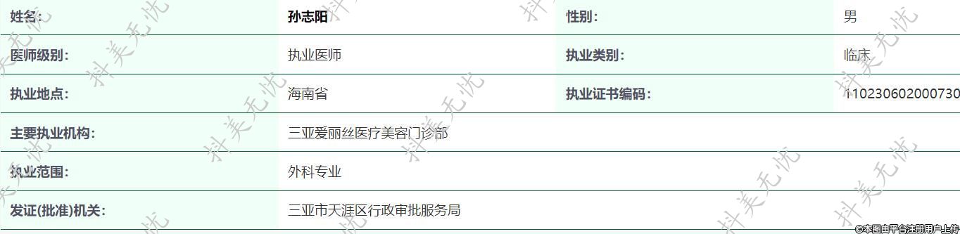 主要執(zhí)業(yè)機構(gòu):三亞愛麗絲醫(yī)療美容門診部
