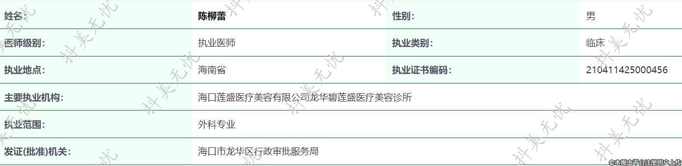 主要執(zhí)業(yè)機(jī)構(gòu):海口蓮盛醫(yī)療美容有限公司龍華碧蓮盛醫(yī)療美容診所