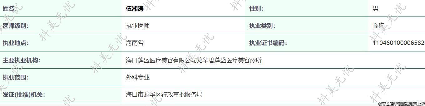 主要執(zhí)業(yè)機構:海口蓮盛醫(yī)療美容有限公司龍華碧蓮盛醫(yī)療美容診所