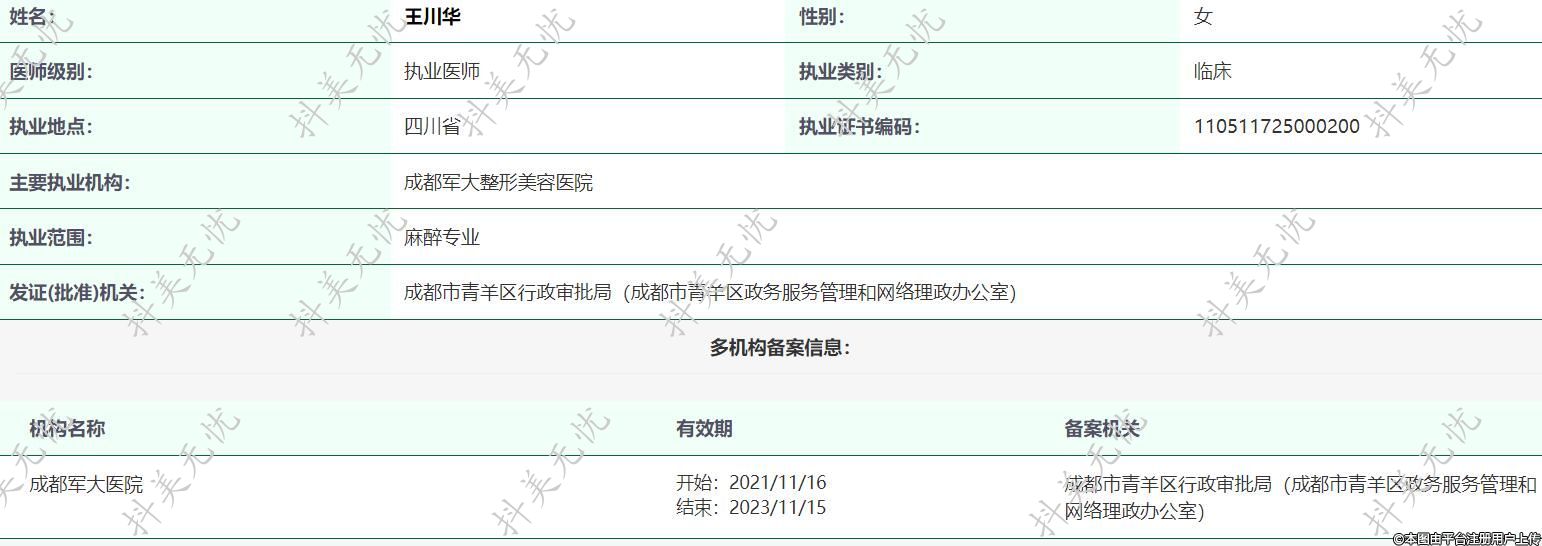 主要執(zhí)業(yè)機(jī)構(gòu):成都軍大整形美容醫(yī)院