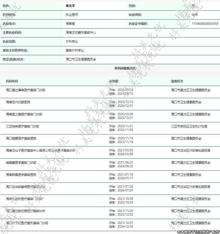 主要執(zhí)業(yè)機(jī)構(gòu):海南王妃整形美容中心