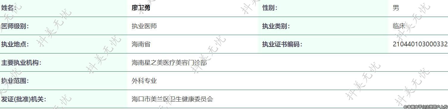 主要執(zhí)業(yè)機(jī)構(gòu):海南星之美醫(yī)療美容門(mén)診部