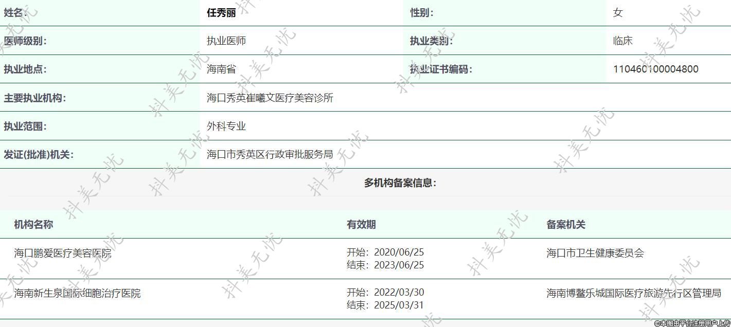 主要執(zhí)業(yè)機(jī)構(gòu):??谛阌⒋揸匚尼t(yī)療美容診所