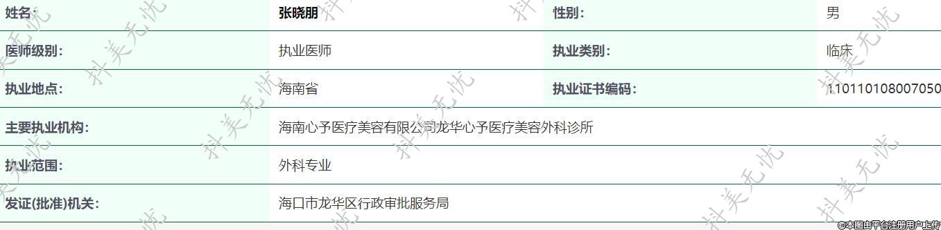 主要執(zhí)業(yè)機構(gòu):海南心予醫(yī)療美容有限公司龍華心予醫(yī)療美容外科診所