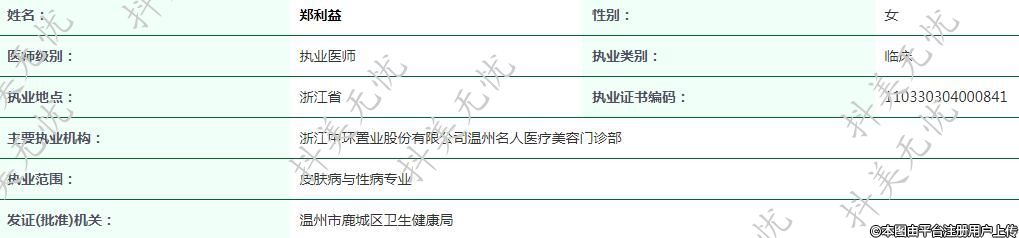 溫州名人醫(yī)療美容執(zhí)業(yè)醫(yī)師