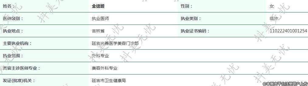 主要執(zhí)業(yè)機(jī)構(gòu):延吉光善醫(yī)學(xué)美容門診部