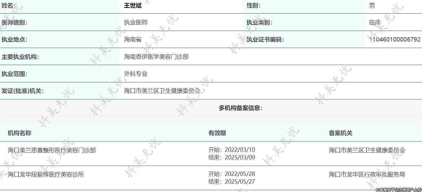 主要執(zhí)業(yè)機(jī)構(gòu):海南恩伊醫(yī)學(xué)美容門(mén)診部