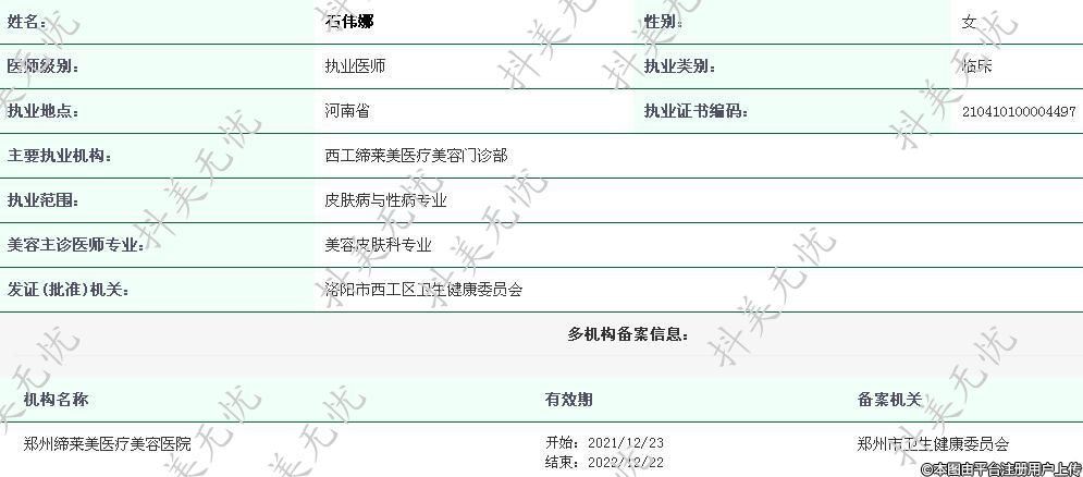 主要執(zhí)業(yè)機構(gòu):西工締萊美醫(yī)療美容門診部
