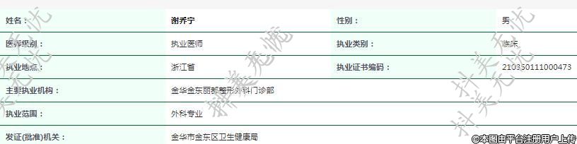 主要執(zhí)業(yè)機(jī)構(gòu):金華金東麗都整形外科門診部
