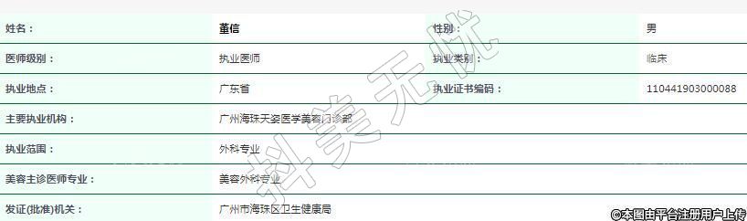 主要執(zhí)業(yè)機構:廣州海珠天姿醫(yī)學美容門診部