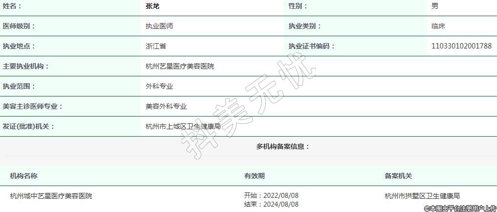 主要執(zhí)業(yè)機構(gòu):杭州藝星醫(yī)療美容醫(yī)院