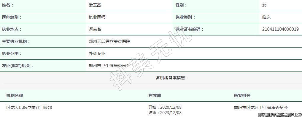 主要執(zhí)業(yè)機構(gòu):鄭州天后醫(yī)療美容醫(yī)院