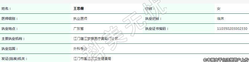 主要執(zhí)業(yè)機(jī)構(gòu):江門(mén)蓬江夢(mèng)想醫(yī)療美容門(mén)診部