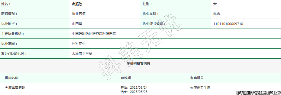主要執(zhí)業(yè)機構:中國輻射防護研究院附屬醫(yī)院